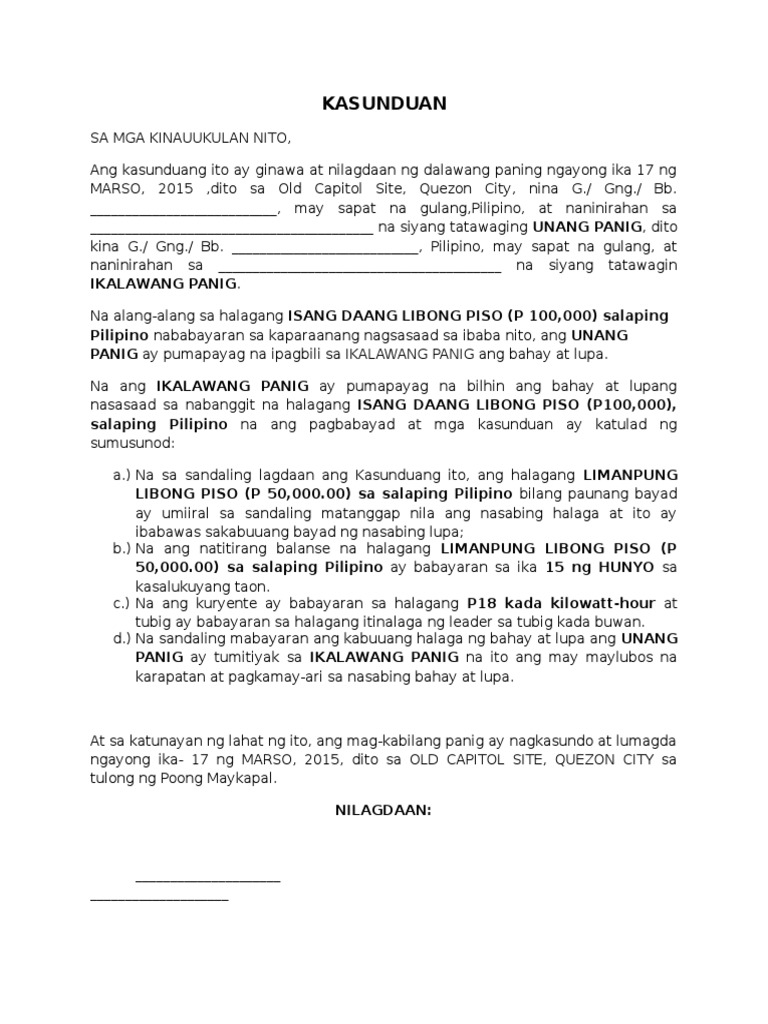 Kasunduan Sa Pagpapautang Fill Online Printable Fillable Blank Pdffiller from www.pdffiller.com Kailangang naiintindihan ang lahat ng impormasyon 0 detalye tungkol sa negosyong papasukan. 8ago pirmahan ang anumang kasulatan, kailangang mayroong kasunduan na maari ninyong bawiin ang inyong pera. 8ago makisapi sa isang negosyo, humingi ng mga prospektus, katalogo, legal na dokumento, at kasulatan ukol sa pinansyal na kalagayan ng kompanya.